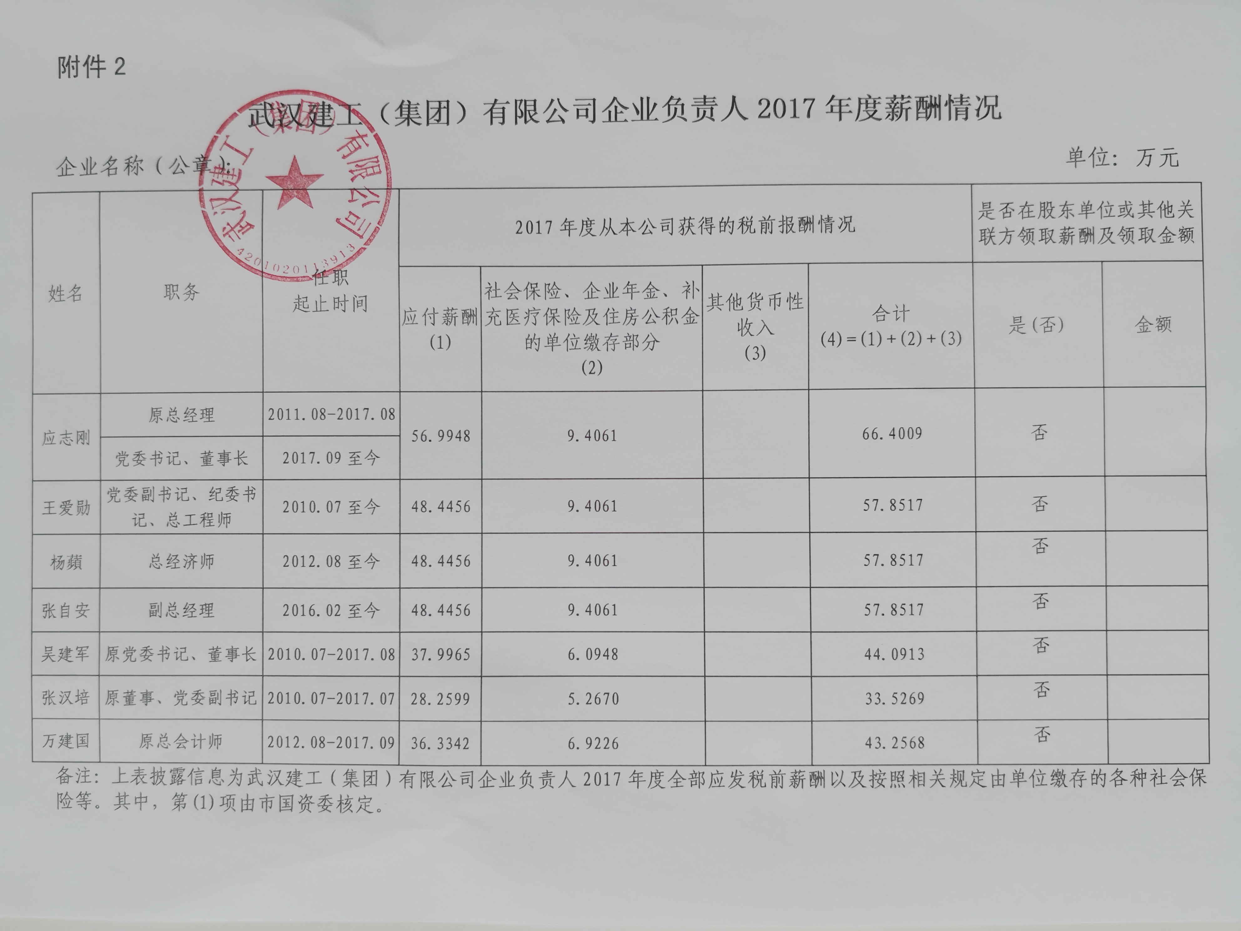 永利官网 (集团)有限公司企业负责人2017年度薪酬情况