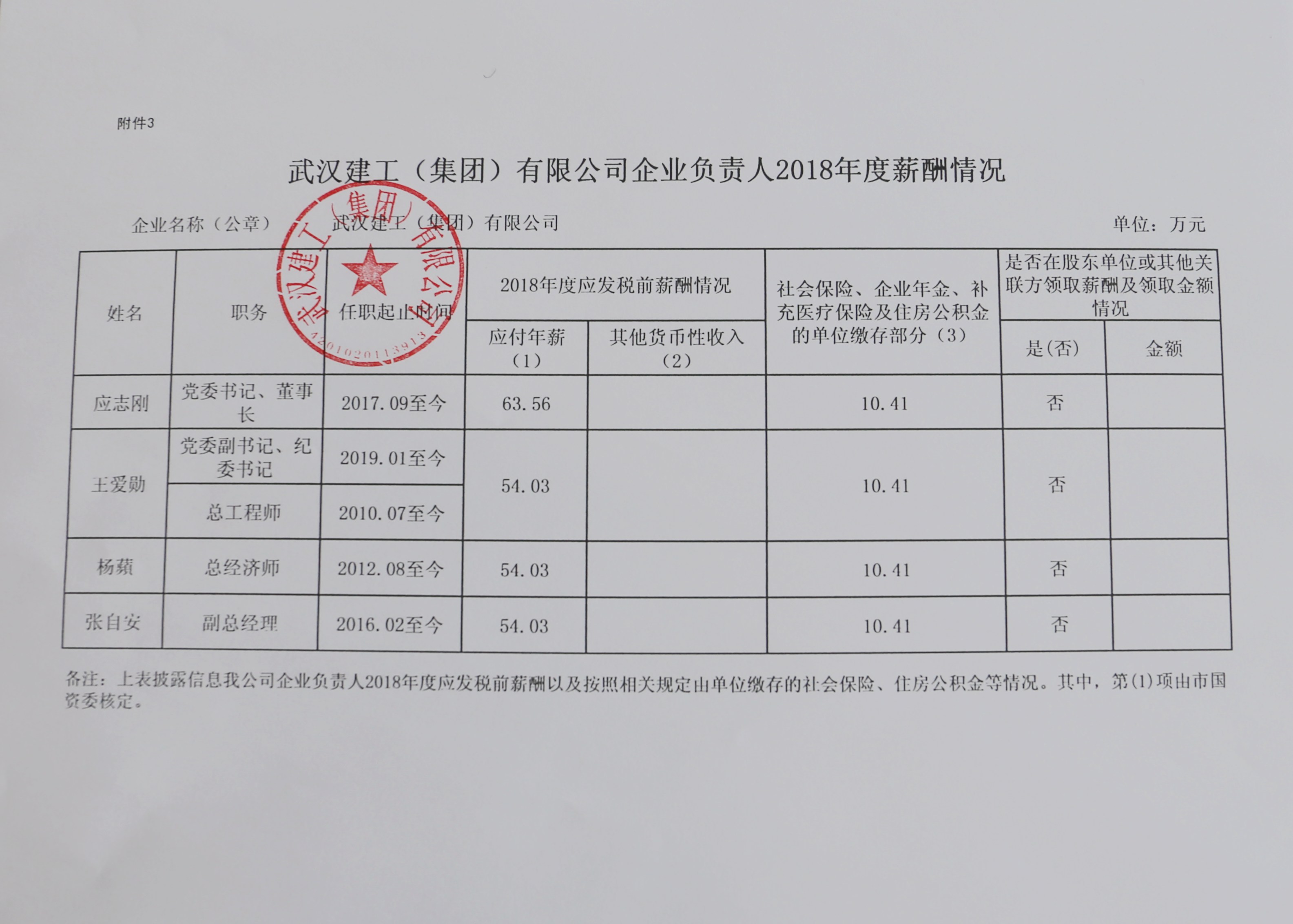永利官网 (集团)有限公司企业负责人2018年度薪酬情况